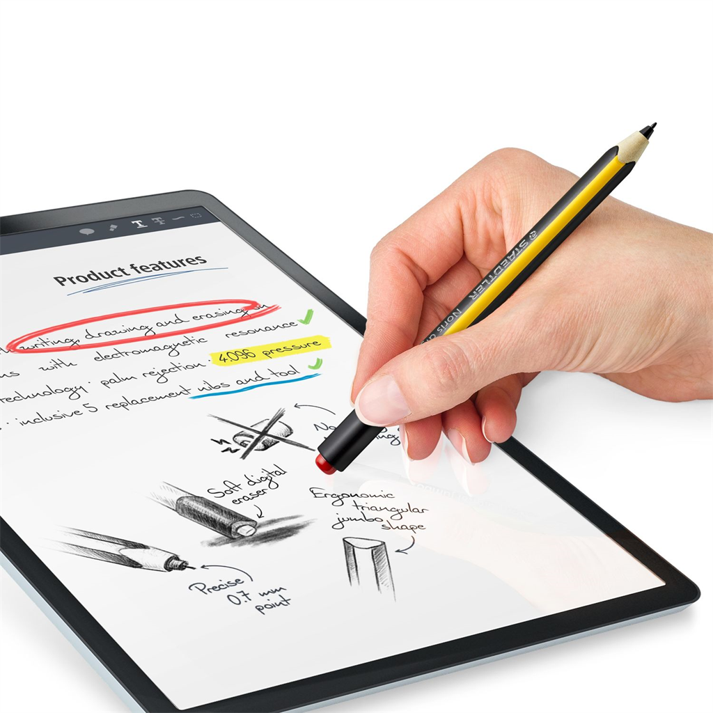 Cardboard box containing 1 Noris digital jumbo stylus pencil, 5 replacement nibs and tool