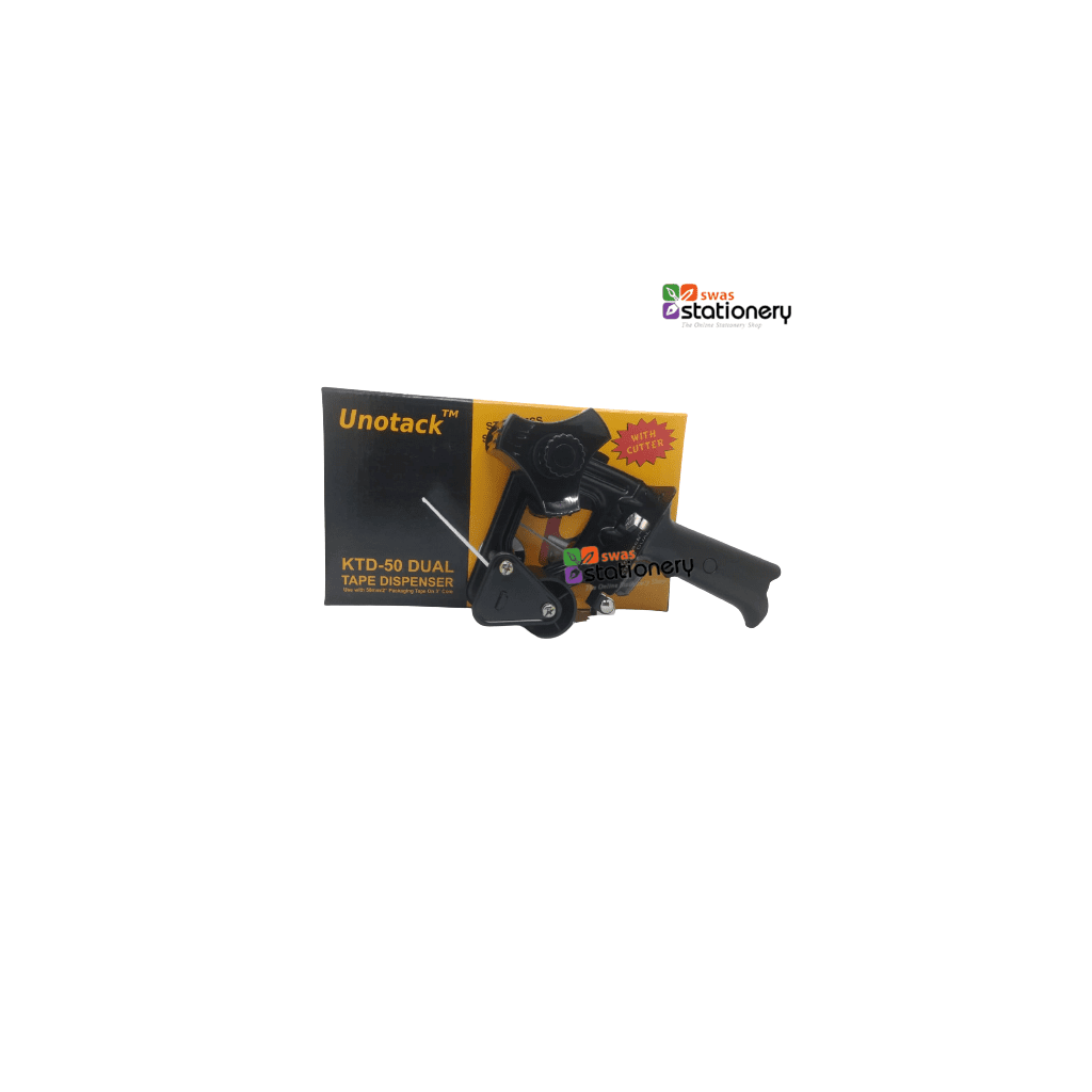 Unotack Ktd-50 2`` Dual Metal Body Tape Dispenser With Stainless Steel Blade and Cutter, Black color
