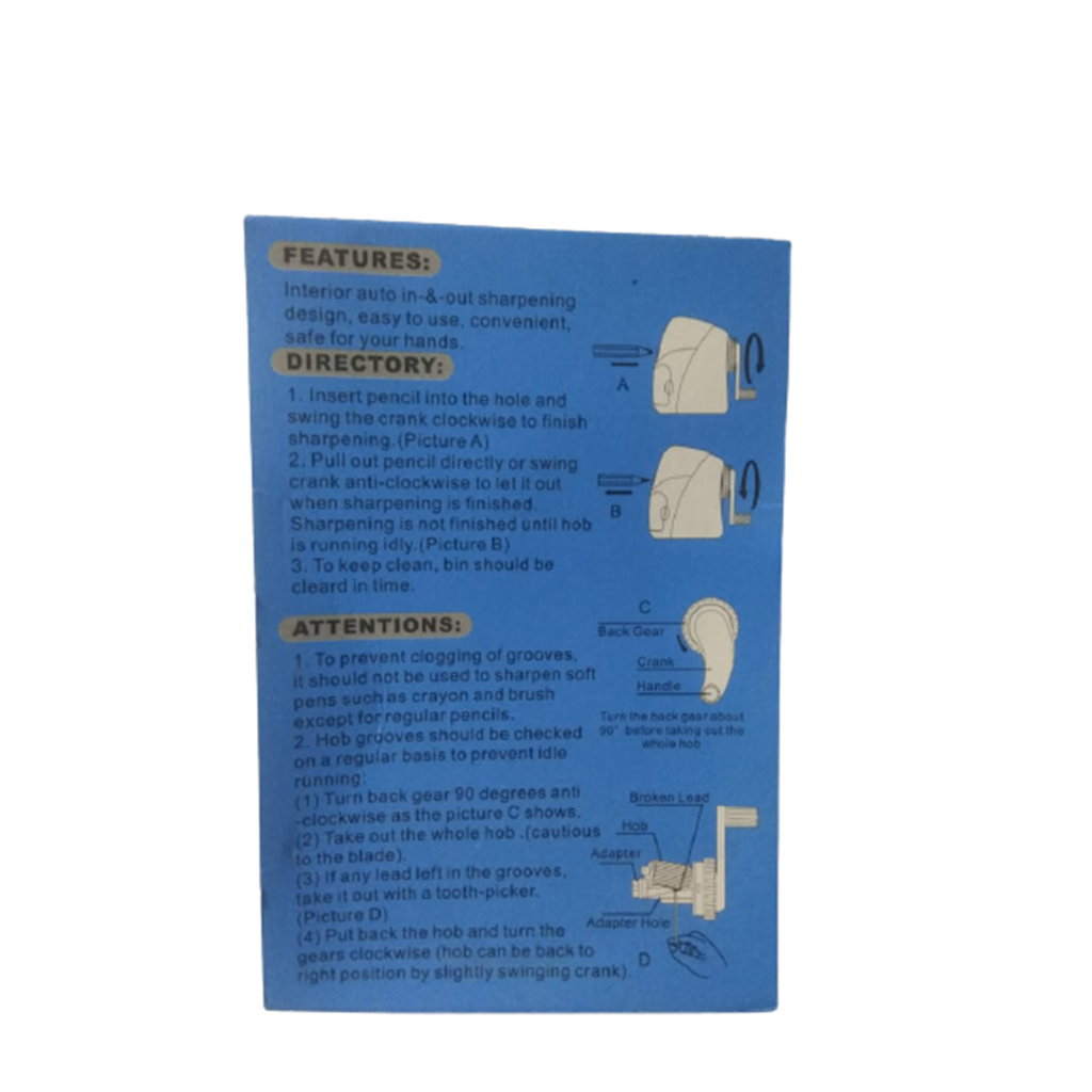 - Insert pencil Into The Hole And Swing The Crank Clokwise To Finish Sharpening.