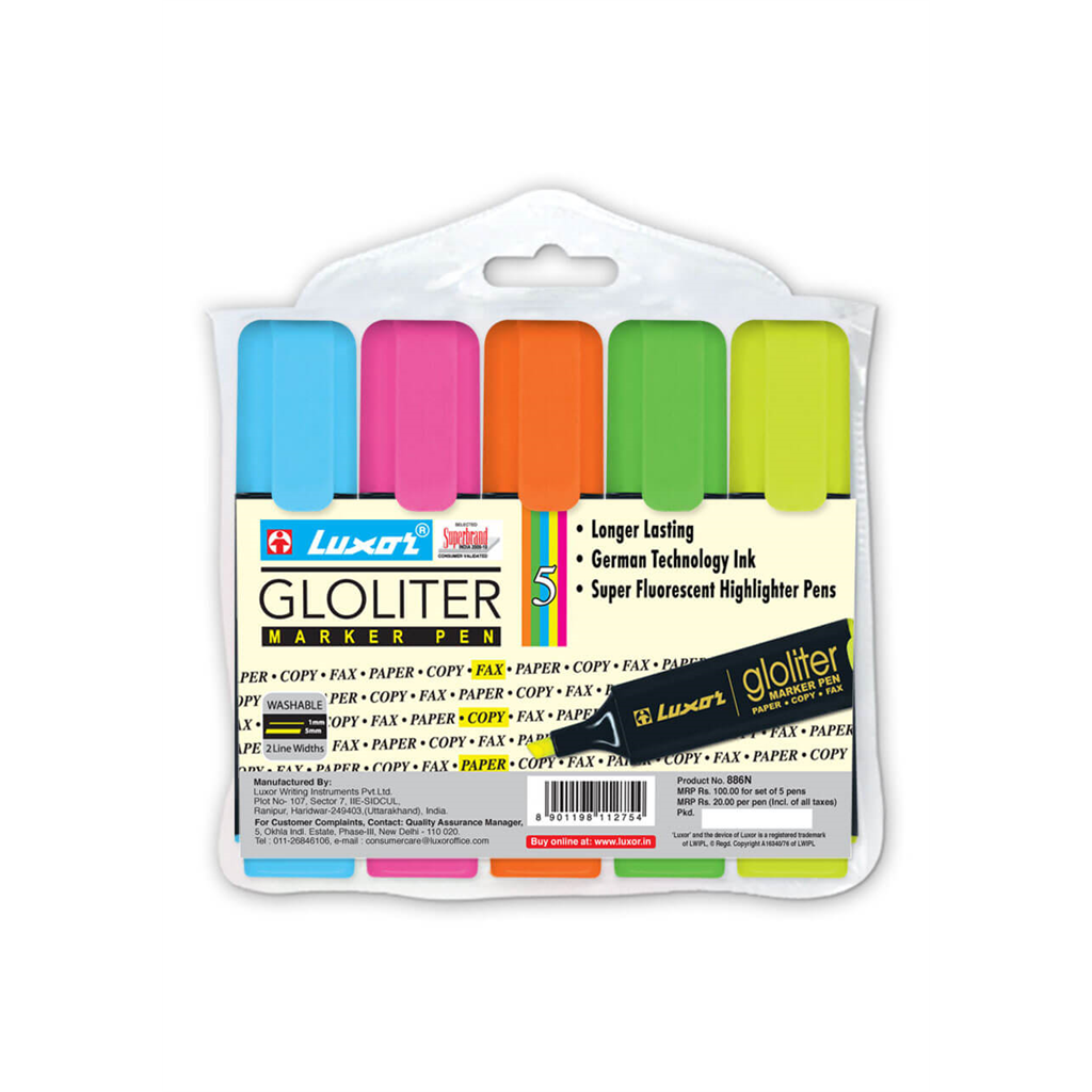 Large ink reservoir for cinsistent ink flow and bright fluorescent colours.