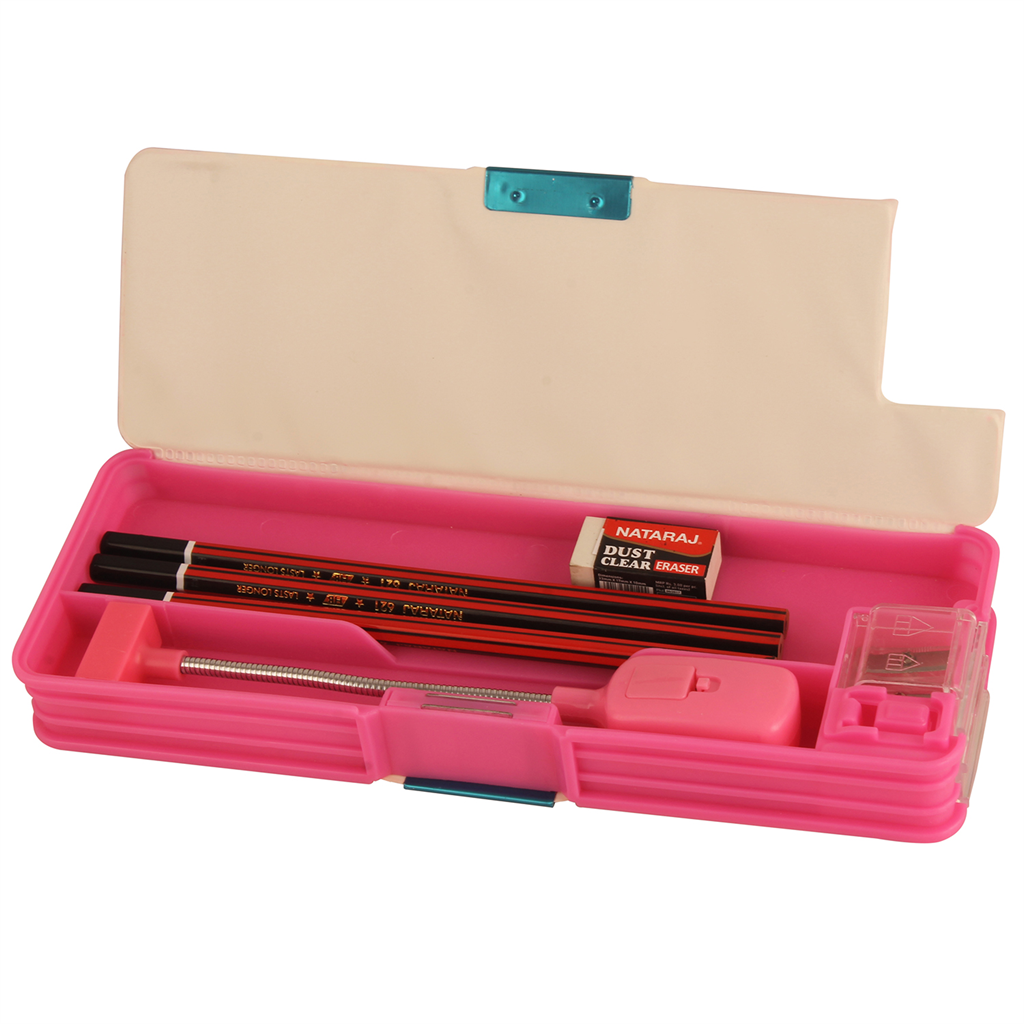 Home Desktop Stationery Pencil Boxes/Pouches STYM Pencil Box With LED Light Plastic (2 sides, Set of 1, Pink)