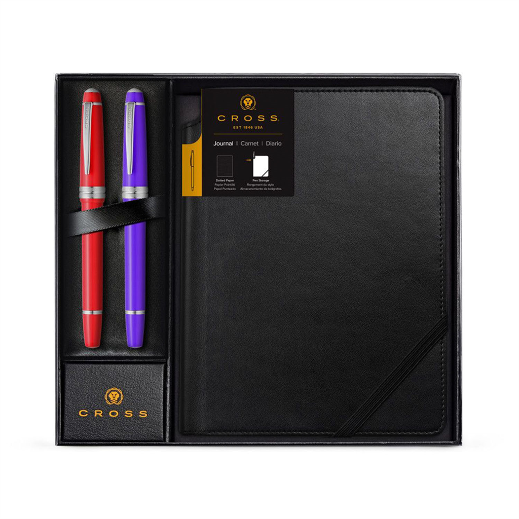 Gift set Includes one Bailey Light Red Rollerball Pen, One Bailey Purple Rollerball Pen and One Black Dotted Journal
