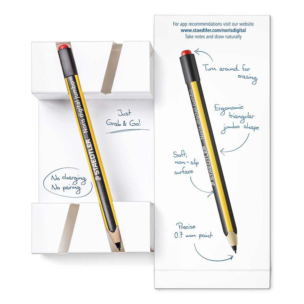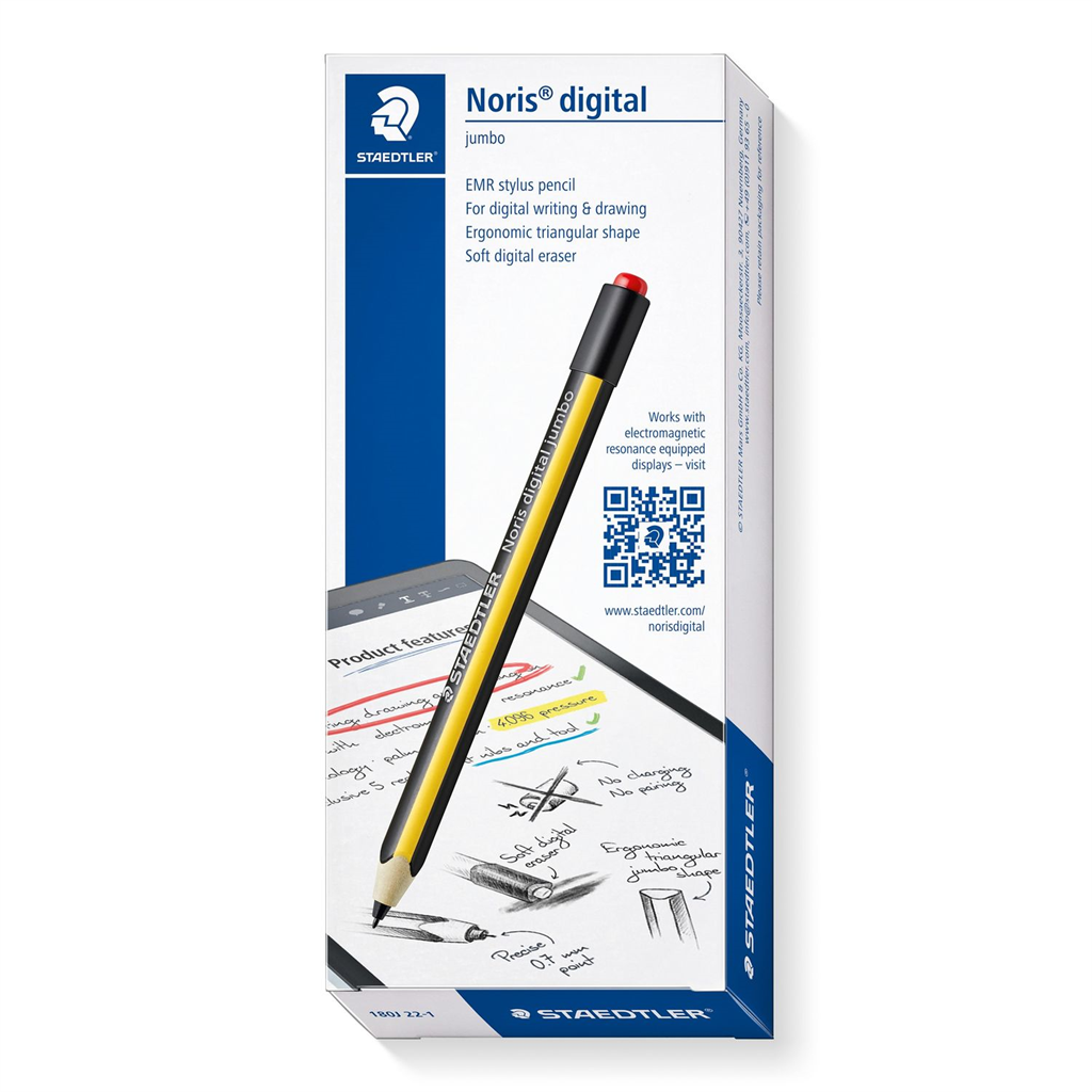 Cardboard box containing 1 Noris digital jumbo stylus pencil, 5 replacement nibs and tool