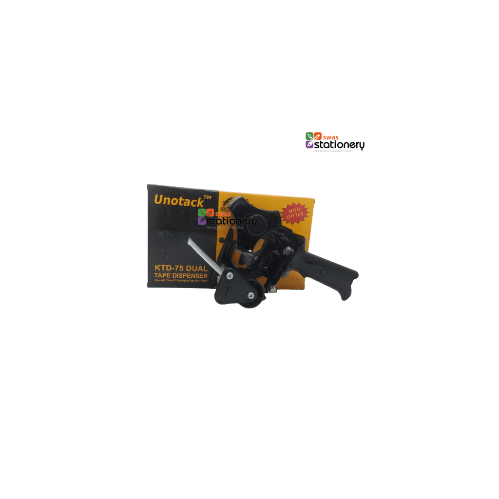 Unotack Ktd-75 Dual Tape Dispenser With Stainless Steel Blade With Cutter, Black color