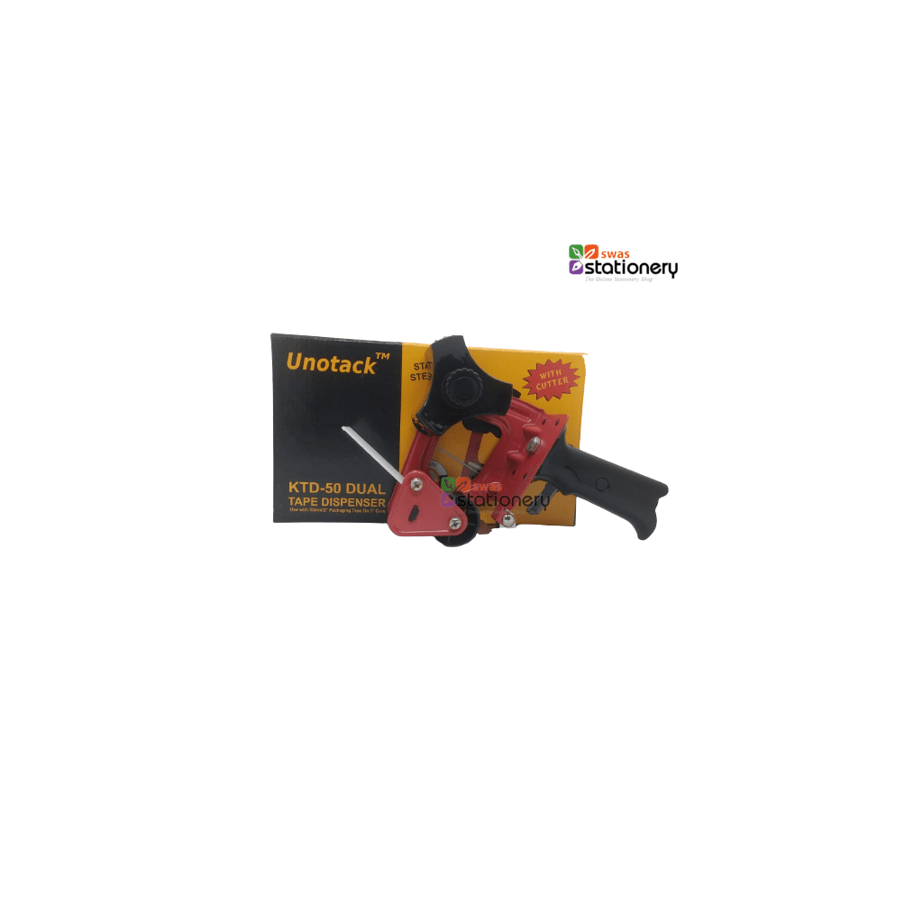 Unotack Ktd-50 2`` Dual Metal Body Tape Dispenser With Stainless Steel Blade and Cutter, Black color