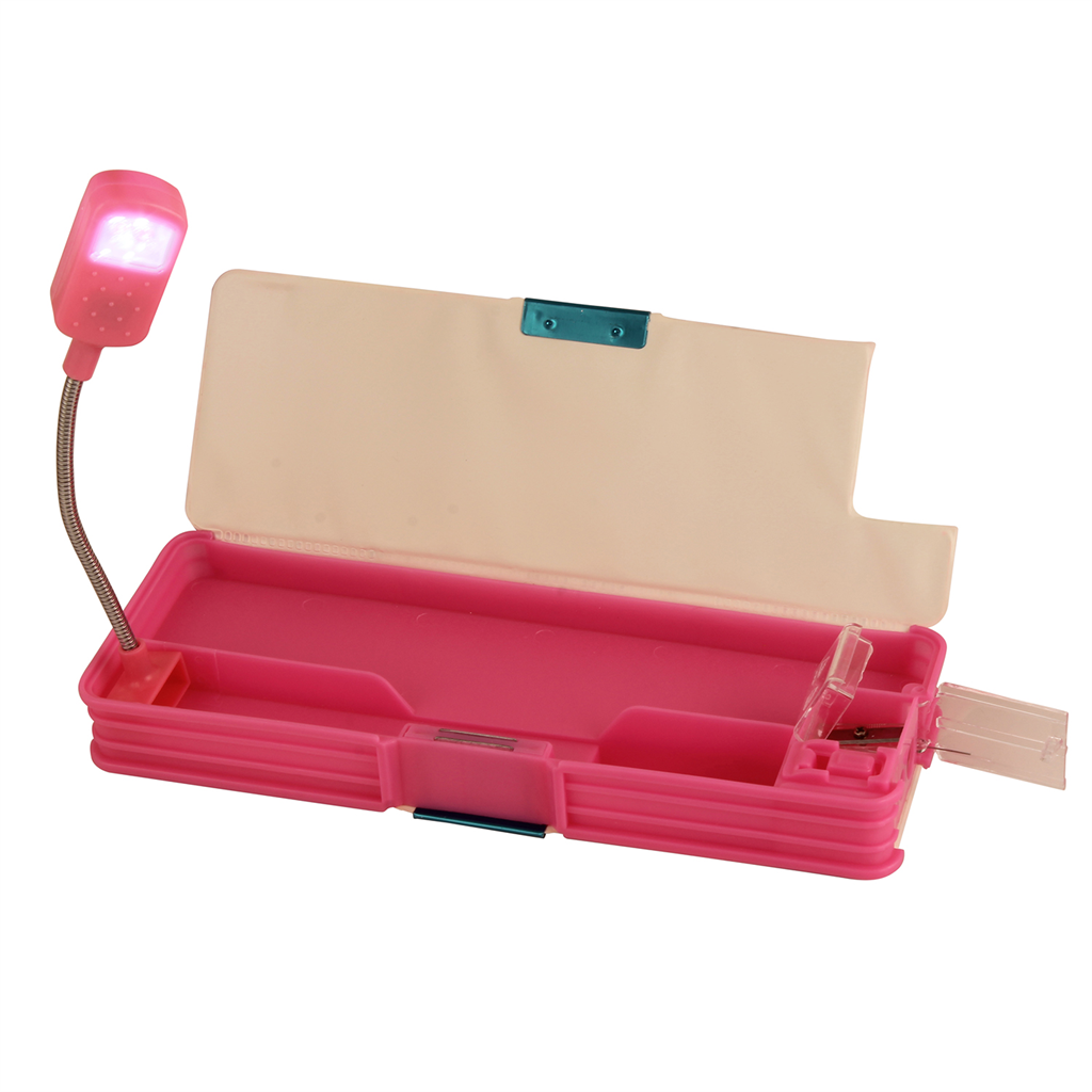Home Desktop Stationery Pencil Boxes/Pouches STYM Pencil Box With LED Light Plastic (2 sides, Set of 1, Pink)