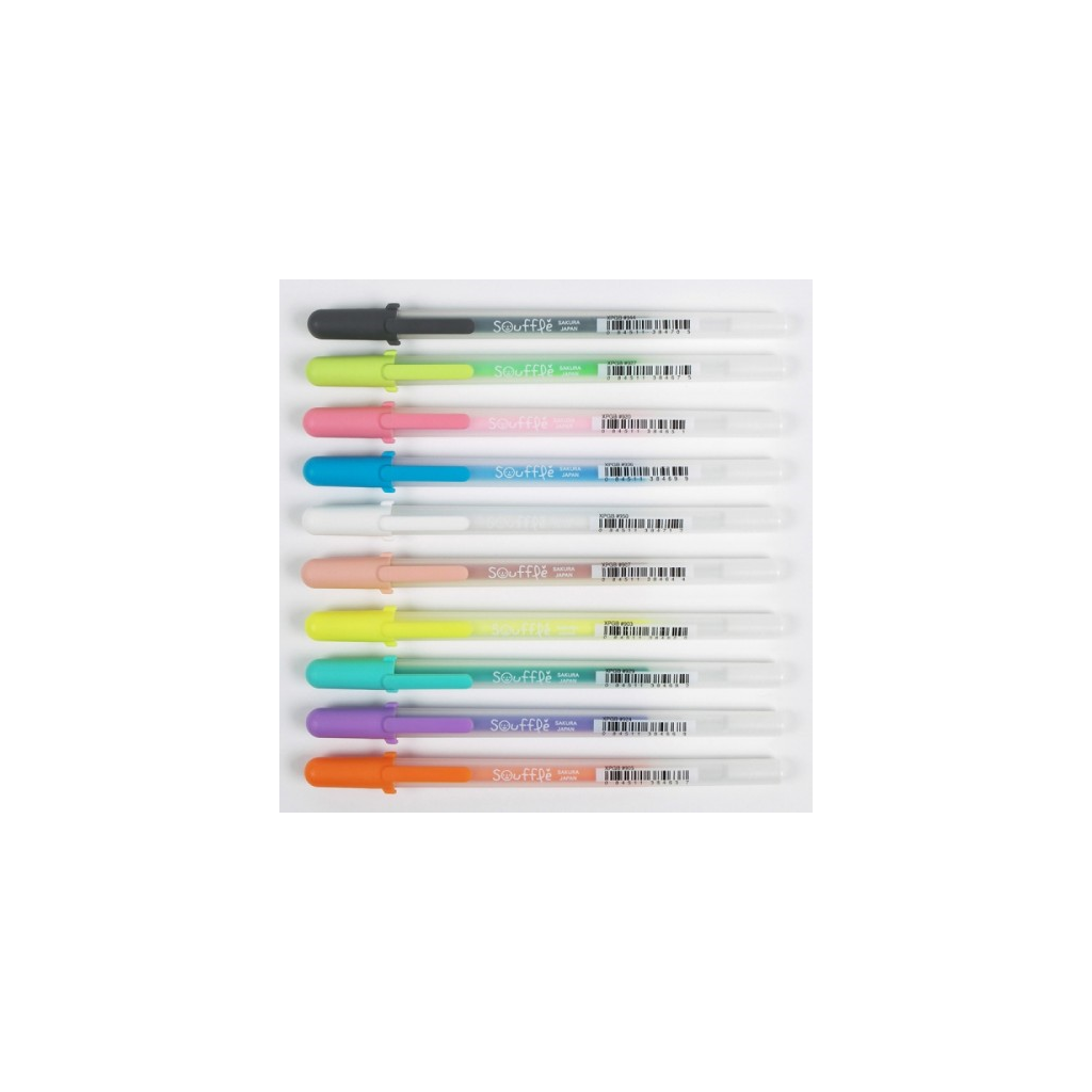 The soft color and raised line of Soufflé® adds vibrant detail and dimension to art and craft projects. Three-dimensional (#D) ink leaves a raised ink line for writing you can feel. Soufflé pens color on plastic, coated paper, acetate, vellum and glass.