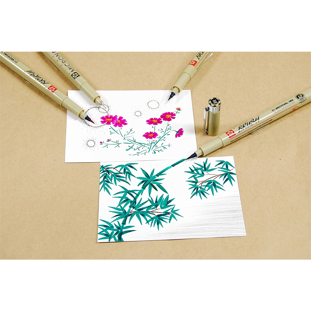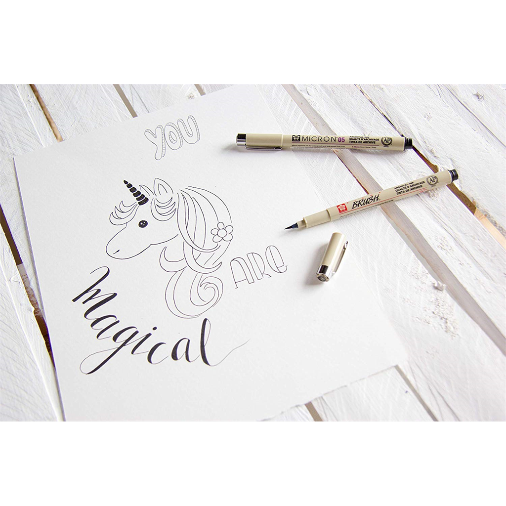 • Patented Pigma ink, archival, waterproof, brush nib.